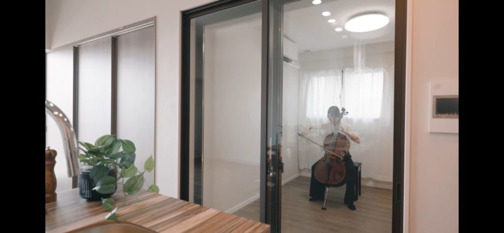 一般的に想像する密閉型の防音室とは違い、ガラス扉で仕切られた開放的な空間が特徴でした。