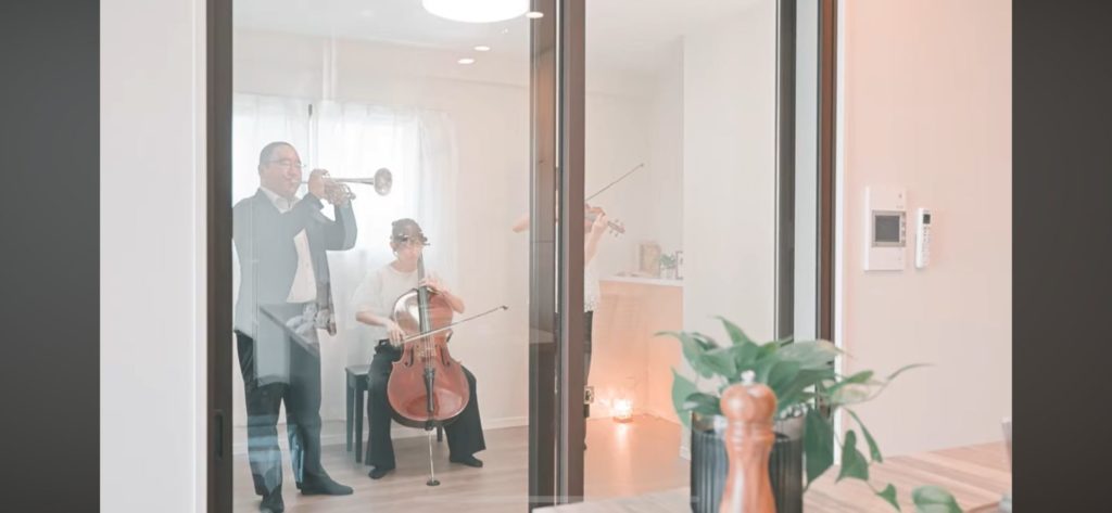 今回は楽団の方にご協力いただき、トランペット・チェロ・バイオリンで実際に演奏を収録。