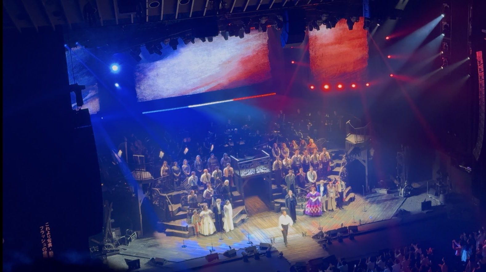 舞台の広がりや出演者の数、演出の密度のすべてが世界版ならではの迫力で、特に革命のシーンは群衆のエネルギーが舞台いっぱいに広がって、空気そのものが変わるような感覚がありました。